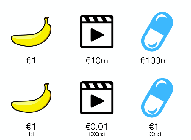 Die Keynote startete mit der Frage “Was ist das Neue an der digitalen Ökonomie?” Das Publikum lieferte diverse Antworten - so zum Beispiel vereinfachte Kommunikationsmöglichkeiten oder höhere Effizienz durch technologischen Fortschritt - doch erst der Vorschlag der “kostenlosen Vervielfältigung” (engl. costless copying) war das, worauf Pollock hinauswollte. Diesen Punkt verdeutlichte er anschließend mit einer Frage an das Publikum. Das Publikum solle sich drei Dinge vorstellen - eine Banane, eine Film-DVD und eine Tablette eines Medikaments. Die Frage lautete nun: Welches dieser drei Dinge ist nicht wie die anderen? Zur Überraschung vieler argumentierte er, dass die Banane das Besondere sei. Die Kosten, die bei der Herstellung eines Films oder eines neuen Medikaments anfallen sind hoch aber auch einmalig. Einen Film zu drehen oder ein Medikament zu entwickeln, ist aufwendig und teuer - eine weitere Kopie des Films oder des Medikaments herzustellen hingegen quasi kostenlos. Eine zweite Banane herzustellen kostet jedoch etwa genau so viel wie die erste Banane.