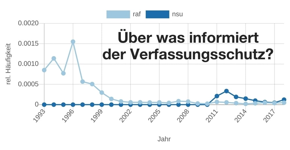 Die Berichte können auf der Webseite entweder direkt angesehen oder als PDF heruntergeladen werden. Aus alten, analogen Berichten, die nur als Scan vorliegen, wird mittels Machine Learning der Text erkannt (OCR). So werden die Texte zugänglich und Nutzer:innen können die Berichte nach Schlagwörtern durchsuchen. Außerdem können Erwähnungen in Berichten im zeitlichen Verlauf verglichen werden, um sogenannte “Verfassungsschutz Trends” zu visualisieren. Dazu werden die Häufigkeiten von Wörtern in Relation zu der Gesamthäufigkeit pro Jahr gesetzt. Zur Weiterverwendung können alle Berichte gebündelt heruntergeladen werden und es steht eine Programmierschnittstelle (API) bereit.