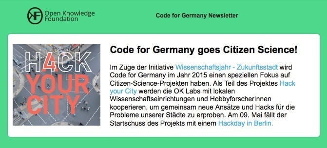 Wir haben wieder einen Newsletter versendet mit Neuigkeiten aus den Labs, zu spannenden Initiativen, Events und Links rund um Open Data und Civic Tech. Dieser Newsletter ist eine Citizen Science Spezialausgabe.