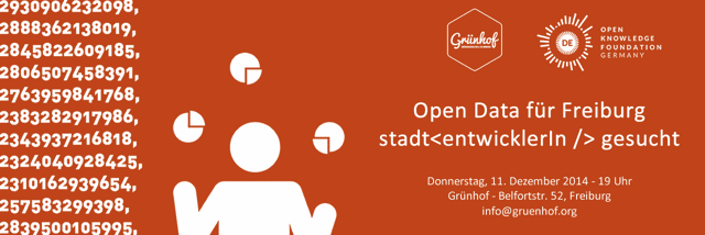 am 11. Dezember 2014 um 19 Uhr laden wir Euch ein, mit uns und der Stadt Freiburg zu diskutieren, ob wir durch die Bereitstellung städtischer Daten die Straßen sicherer, die Schulen besser machen und Bürger mehr in politische Entscheidungsprozesse mit einbinden können.