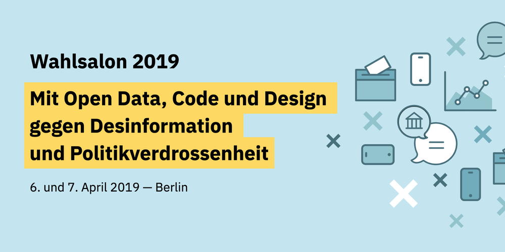 Der Wahlsalon ist ein zweitägiges Event, der die Civic-Tech-Community mit Menschen aus Journalismus, Politik und Zivilgesellschaft zusammenbringt. Gemeinsam arbeiten wir mit regionalen Statistiken und anderen offenen Daten. Wir entwickeln digitale Werkzeuge und Inhalte, die Wählerinnen und Wähler besser informieren und zur Beteiligung motivieren. Dafür suchen wir Designerinnen und Programmierinnen, Journalistinnen und Statistikerinnen, Politik-Nerds und Gesellschafts-Hacker. Eure Skills und Ideen können dabei helfen, demokratische Prozesse zugänglicher zu machen!